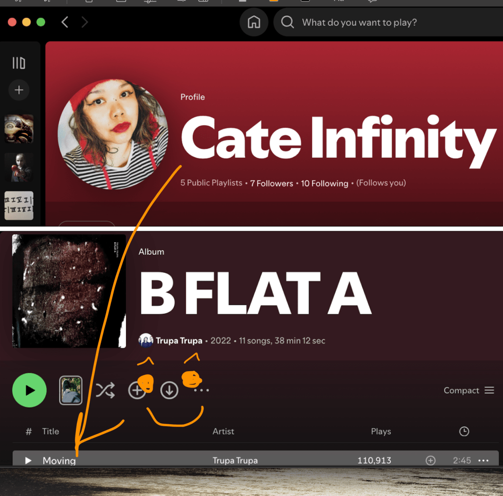 I recognized the follower’s name and a upon seeing mutual follows, saw old friends. A track on their playlist moved me and I had no way to thank them.