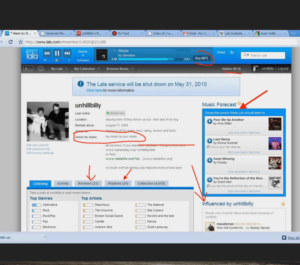 The primordial on-line music platform Lala got it right from the start when they transformed from physical media exchange to digital/cloud music : iTunes and more – a limited social network for ephemeral interest in musical audio content.